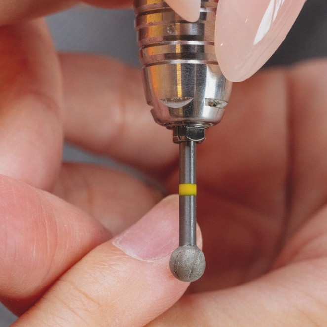 Verleihen Sie Ihrer Nagelvorbereitung mit dem Aprés Groove Ball Shape Bit den perfekten letzten Schliff.