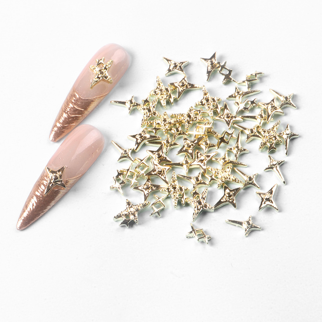 In diesem hochwertigen Mix erwarten dich 50 edle Metall-Charms in verschiedenen Formen, perfekt für auffällige, glamouröse und kreative Designs. Jedes einzelne Overlay lässt sich leicht auf dem Nagel platzieren und sorgt für ein luxuriöses Finish.