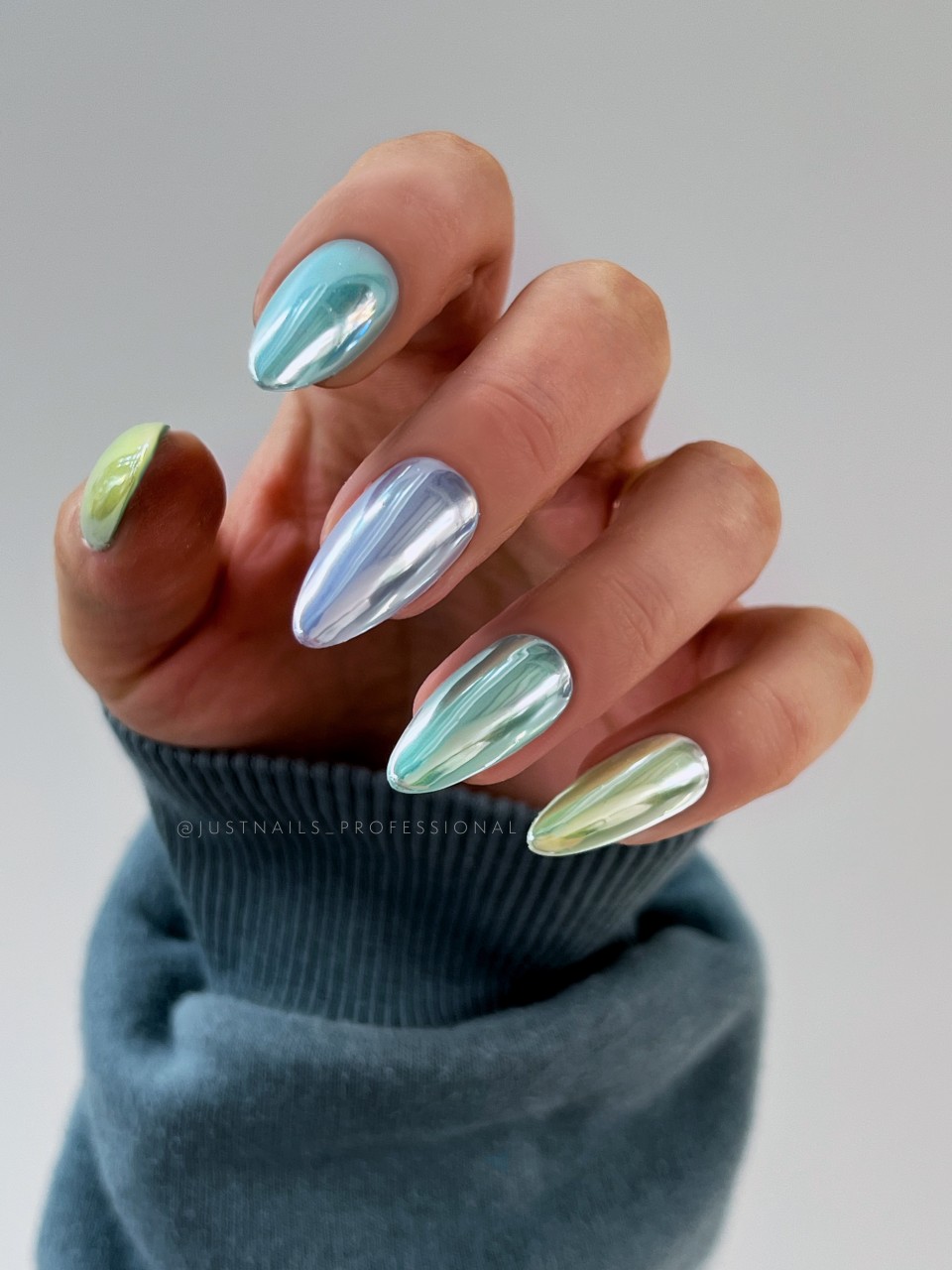 Die JUSTNAILS Polarlight Pigmente verleihen den Nägeln einen intensiven Chrom-Spiegel-Look, inspiriert von den schimmernden Farben der Polarlichter. Je nach Farbuntergrund und Lichteinfall changiert das Pigment in faszinierenden Nuancen und erzeugt immer wieder neue, einzigartige Effekte.